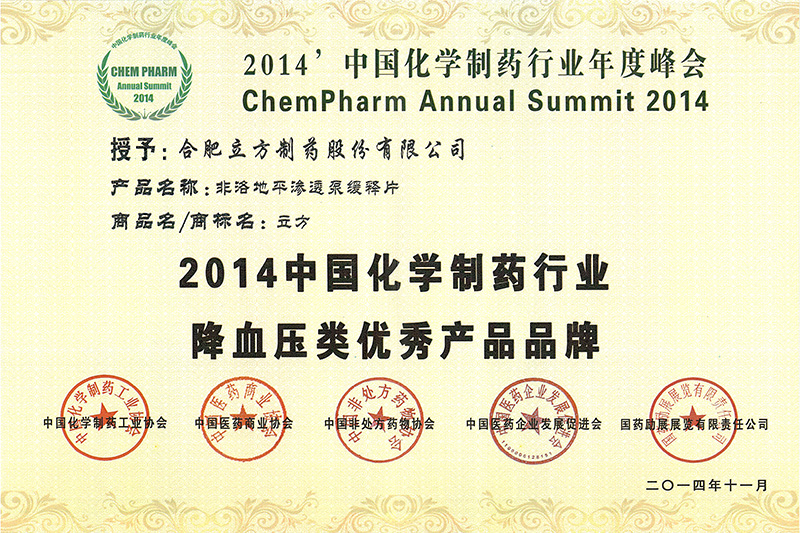2014年中國化學(xué)制藥行業(yè)降血壓類優(yōu)秀產(chǎn)...